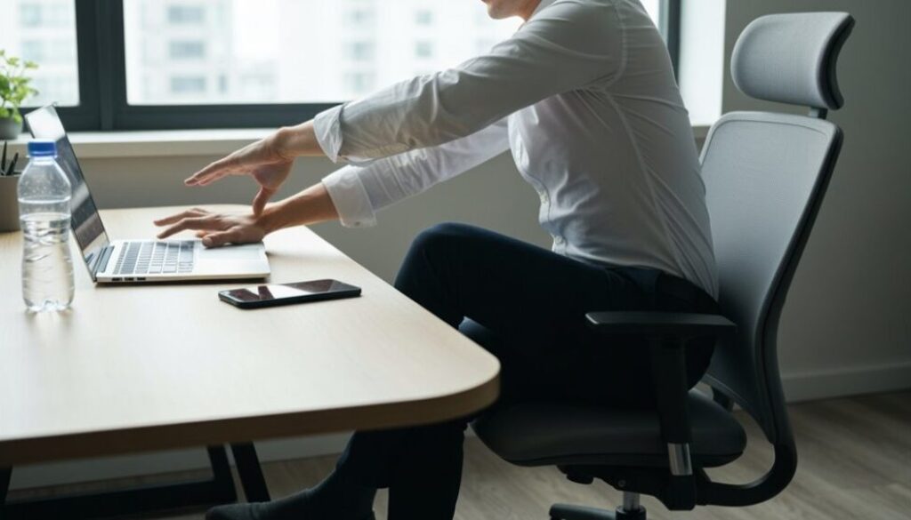 Nachdem Sie kurze, zielgerichtete Mikro-Pausen eingeführt haben, besteht der nächste Schritt darin, diese einminütigen Schreibtisch-Übungssequenzen in einen typischen Arbeitstag zu integrieren, ohne Aufgaben oder Meetings zu unterbrechen. Der Ansatz betont vorhersehbare Platzierung, minimalen Aufwand und die Ausrichtung an kognitiven Rhythmen. Forschungen deuten darauf hin, dass kurze, regelmäßige Bewegungsunterbrechungen die Konzentration verbessern und muskel-skelettale Belastungen reduzieren; praktische Zeitplan-Tricks können sie zur Gewohnheit machen. Prioritätsbündelung gruppiert ähnliche Aufgaben, um vorhersehbare Zeitfenster für Schreibtisch-Übungen freizumachen (z. B. nach zwei fokussierten Arbeitsblöcken). Stille, wenig auffällige Übungen eignen sich für Meetings oder Großraumbüros. Verwenden Sie Kalendererinnerungen und 1–2-minütige Steherinnerungen statt ad-hoc-Entscheidungen, um Konsistenz zu gewährleisten.